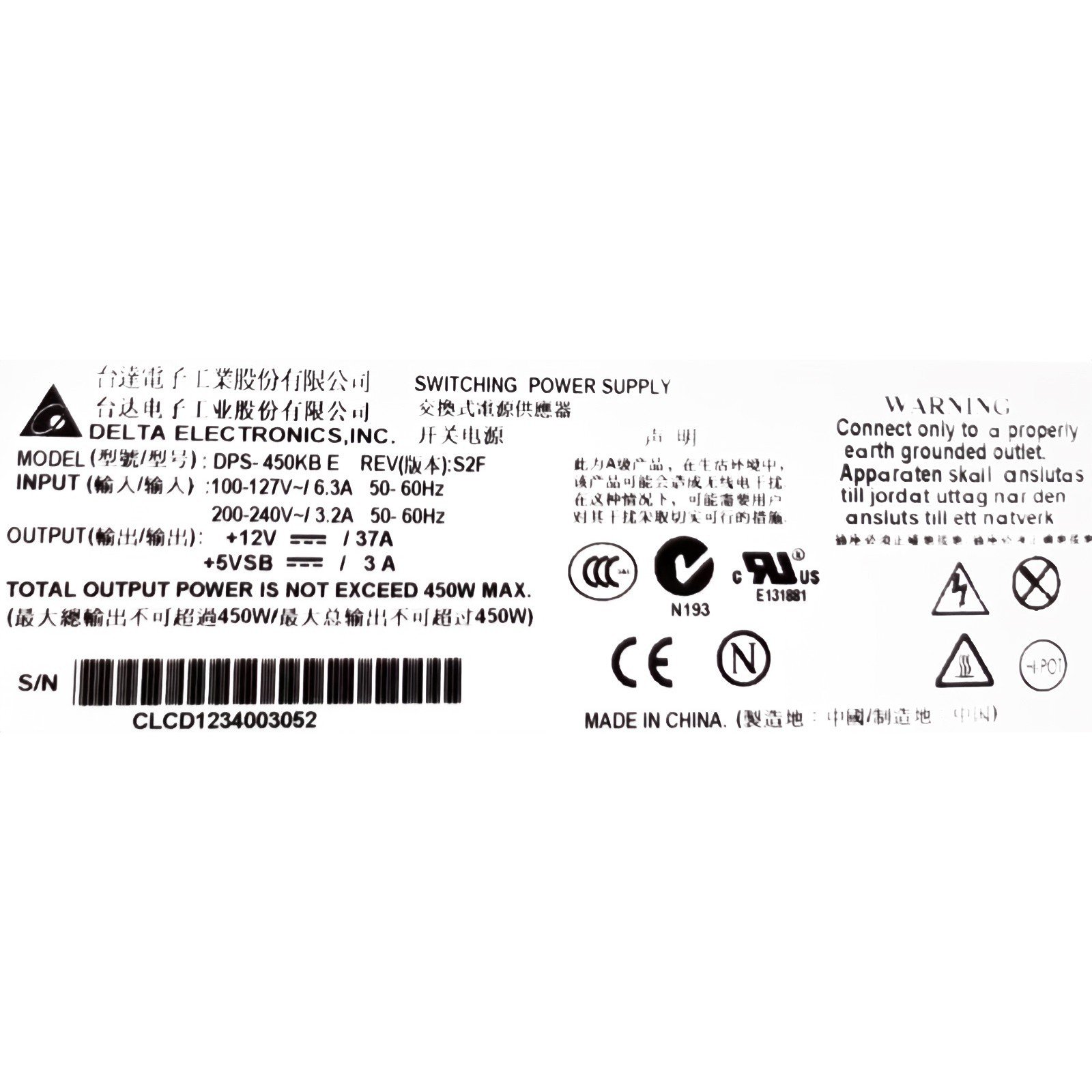 Delta Electronics DPS-450KB E S2F 450w DPS-450KBE